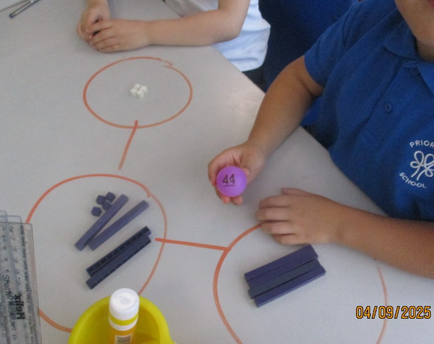 We have been partitioning numbers into tens and ones, playing bingo and making the numbers using base 10 and counters.